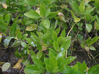 東澳灣以去年有發展商擬建大型豪宅及遊艇會聞名,但東澳灣除了內灣的沙灘外,其實在面向偏東南方面,有一側長長的石灘,這處是膠粒上岸的重災區,大量膠粒在石間堆積,更有膠粒因大浪沖上岸時,停留在植物上,如今仍然可見。